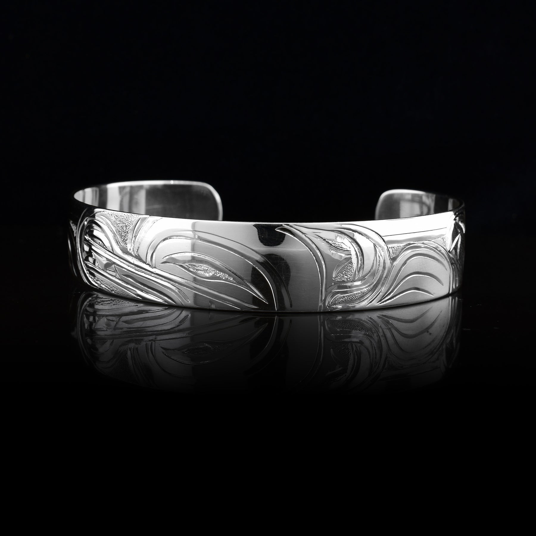 This sterling silver Wolf bracelet has been hand-carved by Kwakwaka'wakw artist Cristiano Bruno. It is a part of the "Every Child Matters" collection. It’s made from solid sterling silver and features a detailed design of the Wolf.